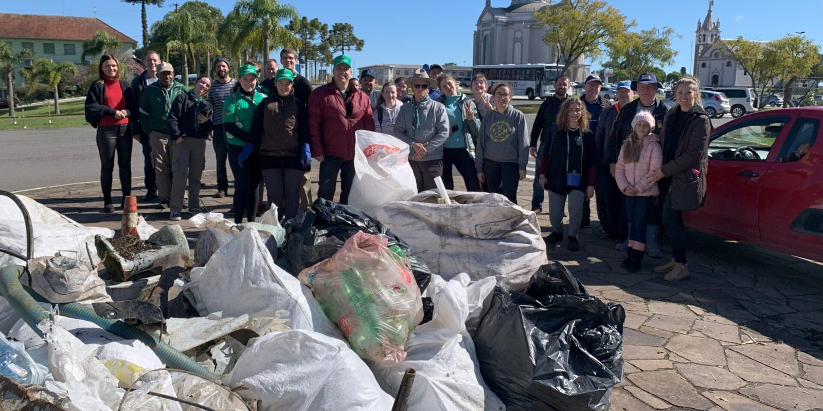 A ação começou as 8h30, com a temperatura de 4 graus, e foi dividida em 4 trechos, do trevo dos Caminhos de Pedra até o Santuário, da rótula da Santa até o trevo do IFRS, do trevo do IFRS até o Santuário e do Restaurante Roman (Busa) até o Santuário. Além disso, teve um carro de apoio para distribuir água e lanches, e fazer o recolhimento dos sacos cheios.